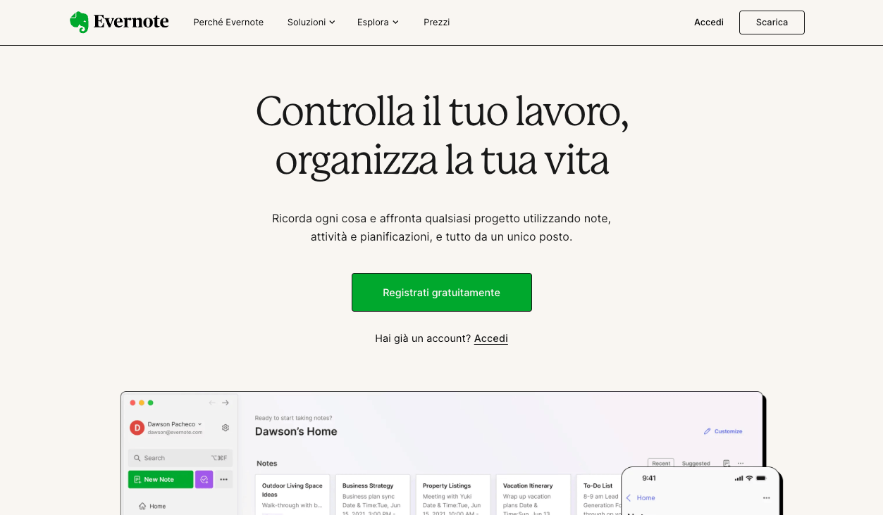 Evernote è uno strumento per gestire sia il lavoro che la vita personale.