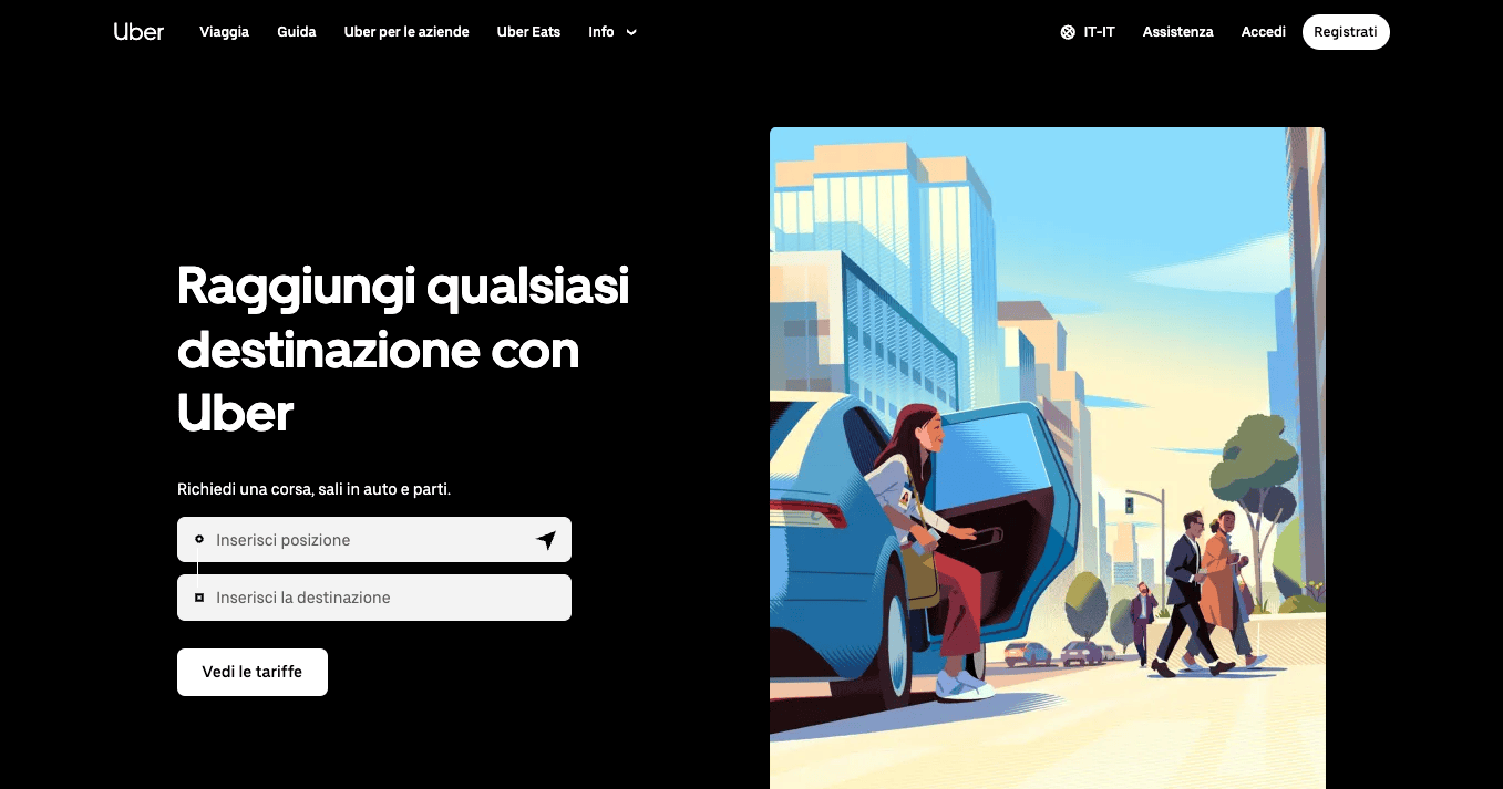 Headline: “Raggiungi qualsiasi destinazione con Uber”
