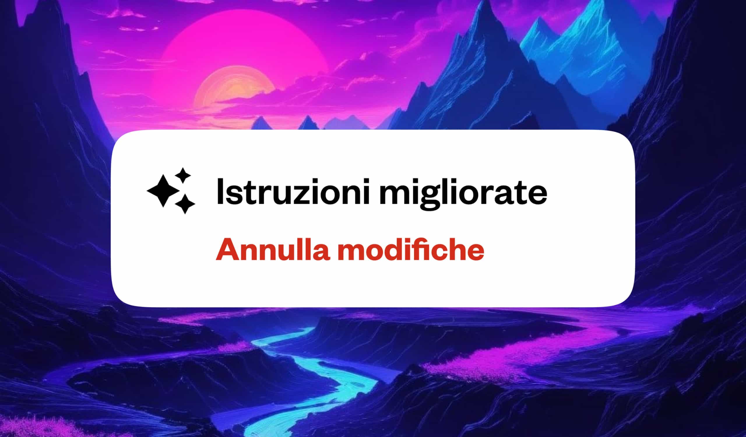 Adotta elementi distintivi per rappresentare l’intervento dell’AI: un piccolo bagliore, una bacchetta magica, un’icona robotica, o qualsiasi simbolo che si integri armoniosamente con lo stile del prodotto.