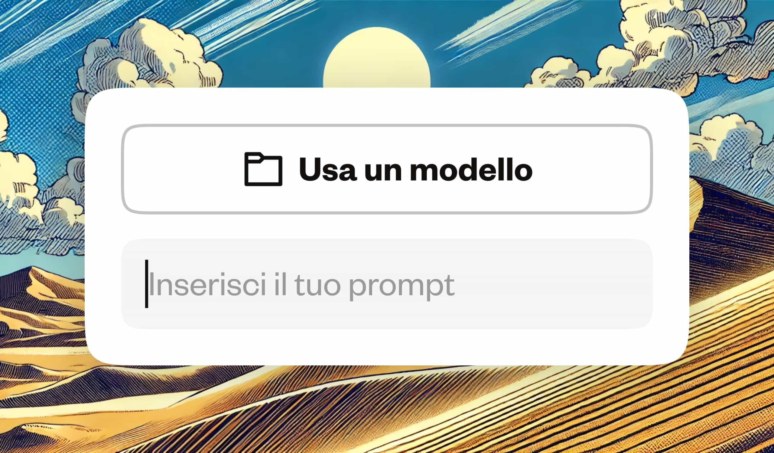 Un design intelligente elimina questo problema, evitando di lasciare l’utente davanti a una pagina bianca. L’interfaccia lo accoglie con esempi ben studiati, che ispirano e guidano verso un utilizzo concreto ed efficace delle potenzialità dell’AI.