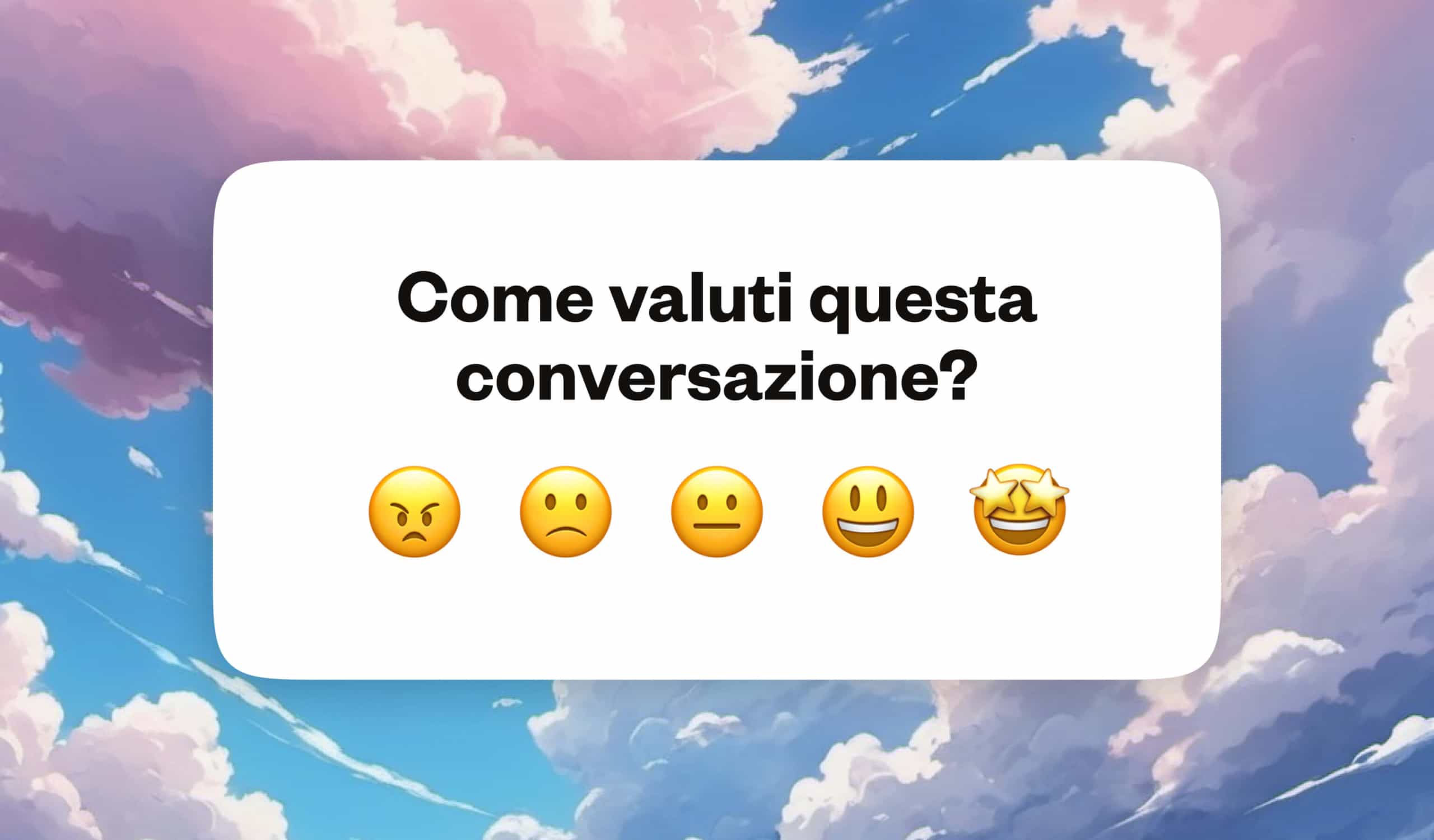 Al contrario di quanto si raccomanda a un galantuomo, un prodotto dovrebbe chiedere spesso se hai gradito l’esperienza. È un tema che il sistema deve essere allenato ad affrontare in modo proattivo ma non troppo diretto, per evitare di spiazzare l’utente - e quindi perdere un buon feedback.