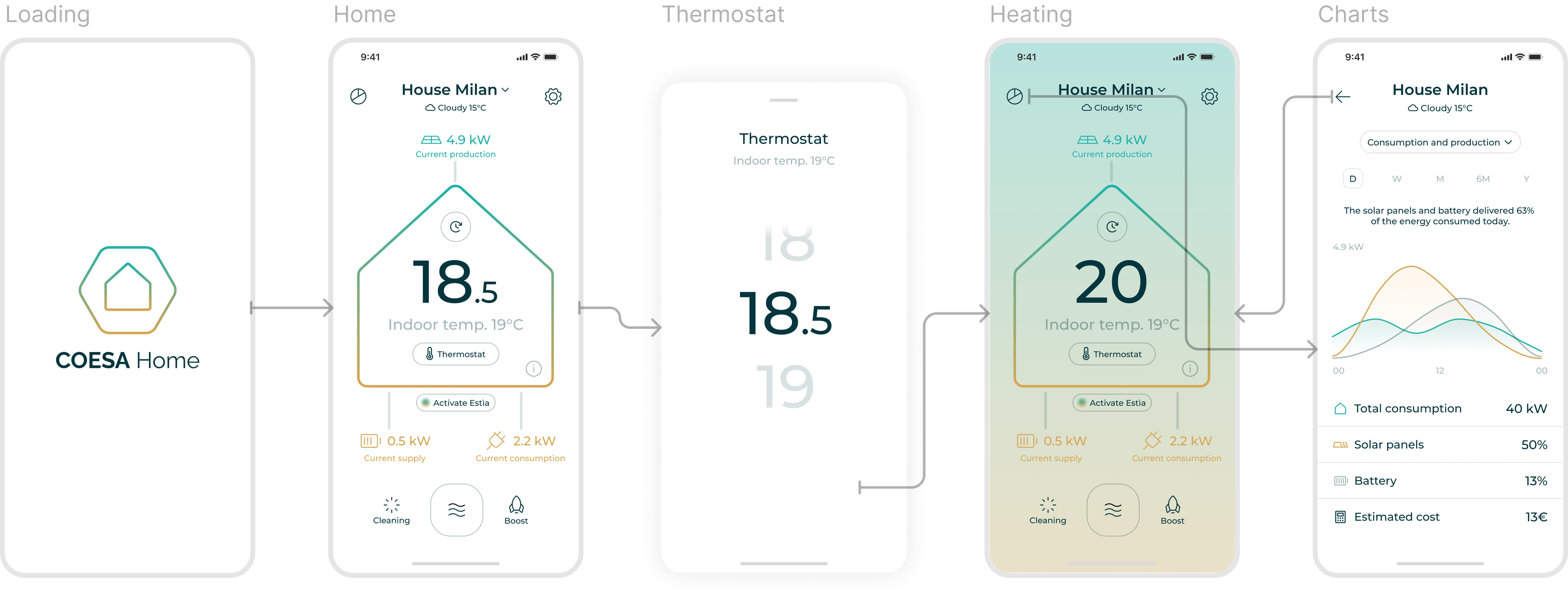Abbiamo progettato Coesa Home, l’app mobile di Coesa che consente ai privati di gestire il proprio impianto fotovoltaico e la temperatura di casa da un’unica interfaccia.