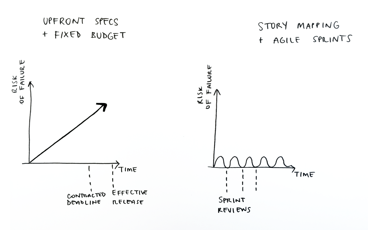 No more blame throwing over specs or timing: since we shared the vision of building something “effectively working” together, we have stopped arguing with clients on what to build and whether things were or were not included in a fixed contract fee. Also timing has become a shared responsibility, and now “positive” pressure is conveyed to build better plans with the available resources — with no blame.