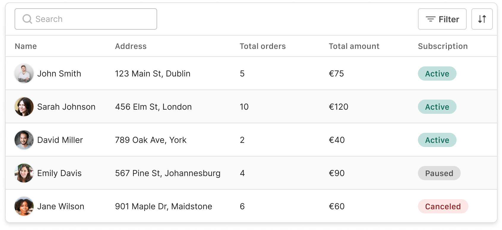 When there is little information to display, such as in the case of a table listing the contacts of a small company, finding the data can be quite simple. In this case, the user can easily find the contacts he or she needs, without the need for advanced functionality.