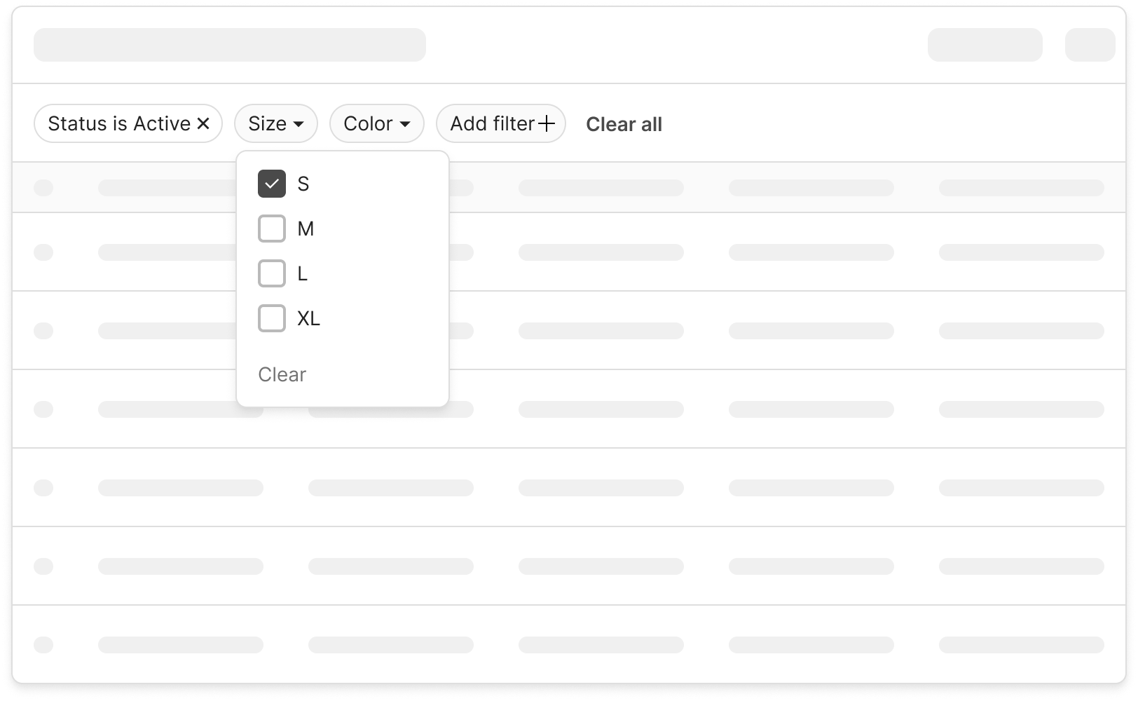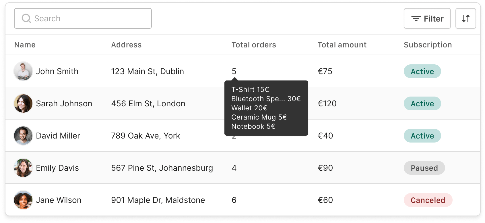 As for filters, it is advisable to organize them consistently with respect to the type of information displayed in the table, using clear icons and labels to indicate the type of filter and the parameters to be selected, avoiding providing too many options so as not to confuse the user. Again, it is important to provide visual feedback to signal the application or removal of filters.
