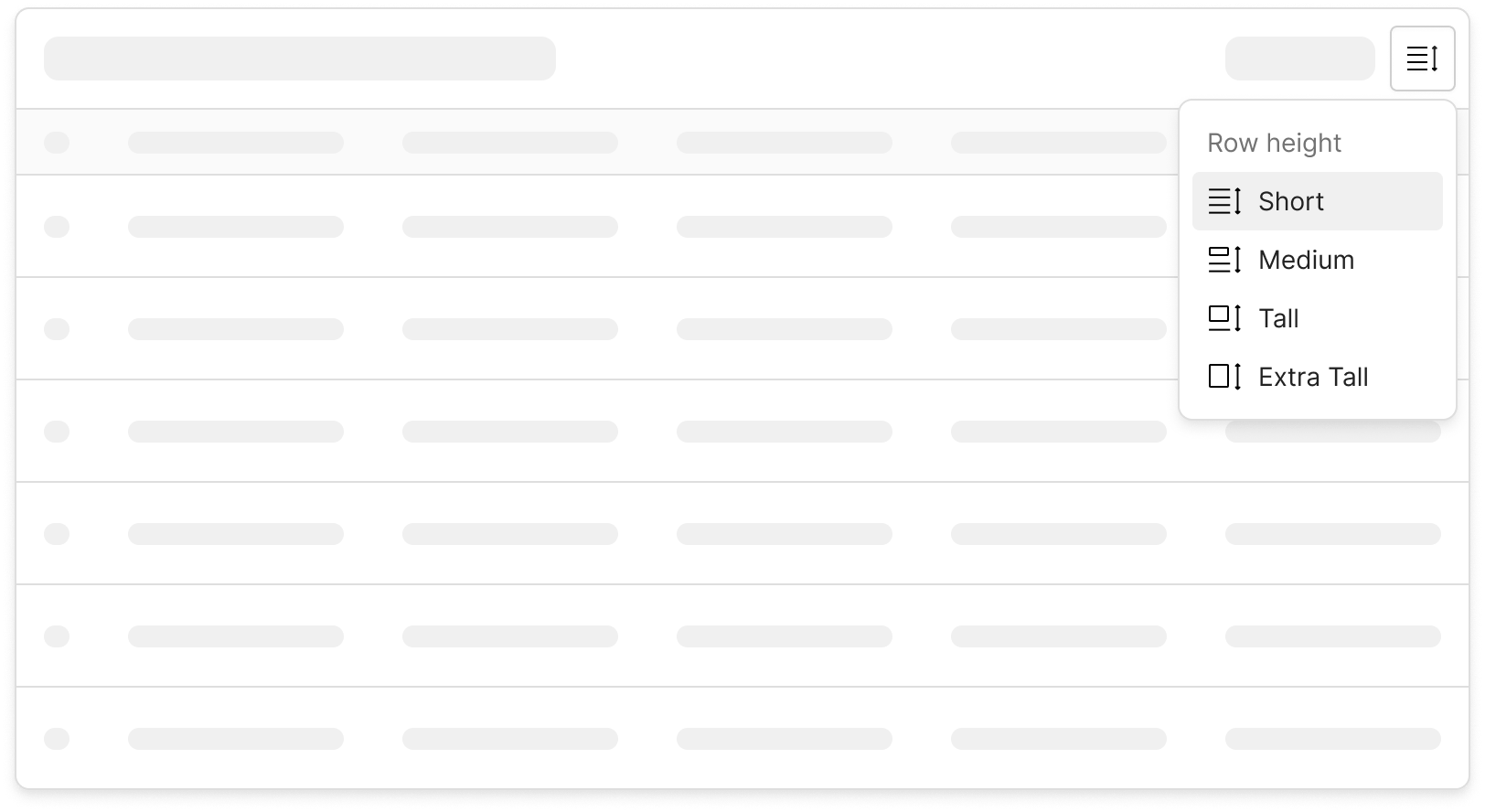 Changing the row density, based on the amount of information contained in each row, can help make the table easier to read. For example, using thicker rows to separate data can help distinguish information in the table. Conversely, using thinner rows can help increase the amount of data visible in a single screen.
