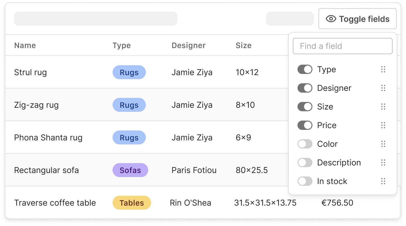 Finally, when working with large amounts of data in a table, it is essential to allow the user to edit and manage the data contextually, without having to switch screens.