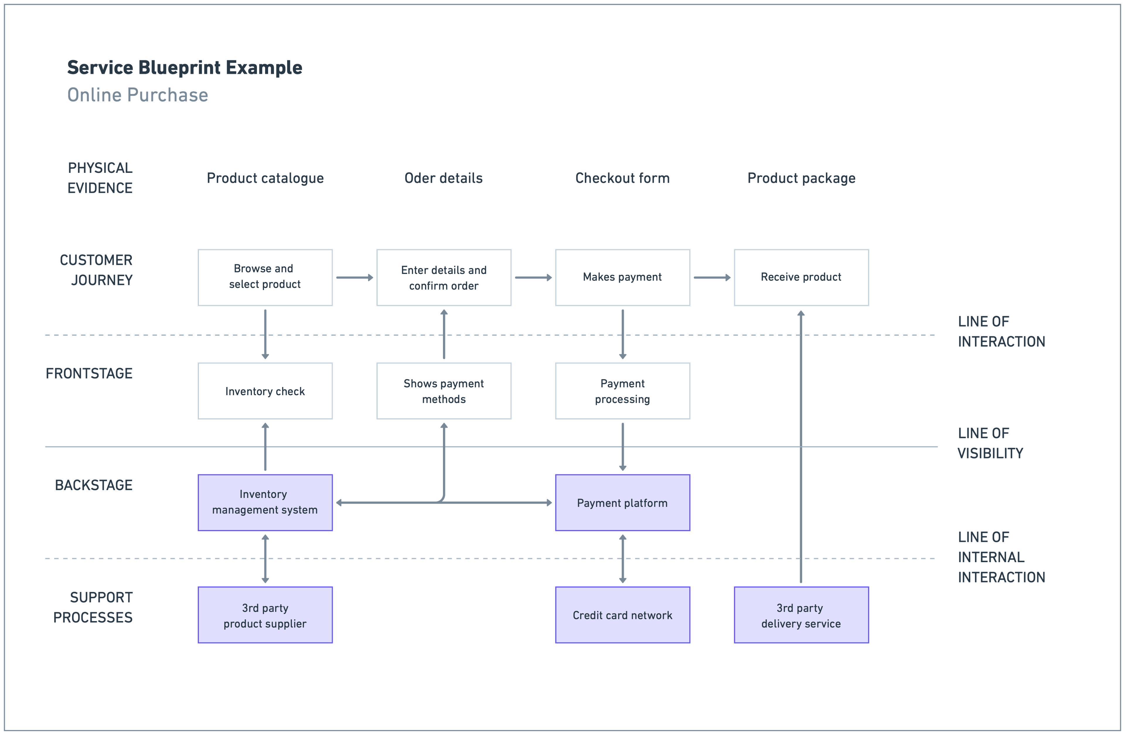 A very useful tool at this stage is the Customer Journey Mapping or the Service Blueprint. These methods allow you to clearly visualize user paths, mapping every interaction within the system. This way, you can identify critical areas and better understand how different roles interact with the software and other physical tools to complete their tasks.