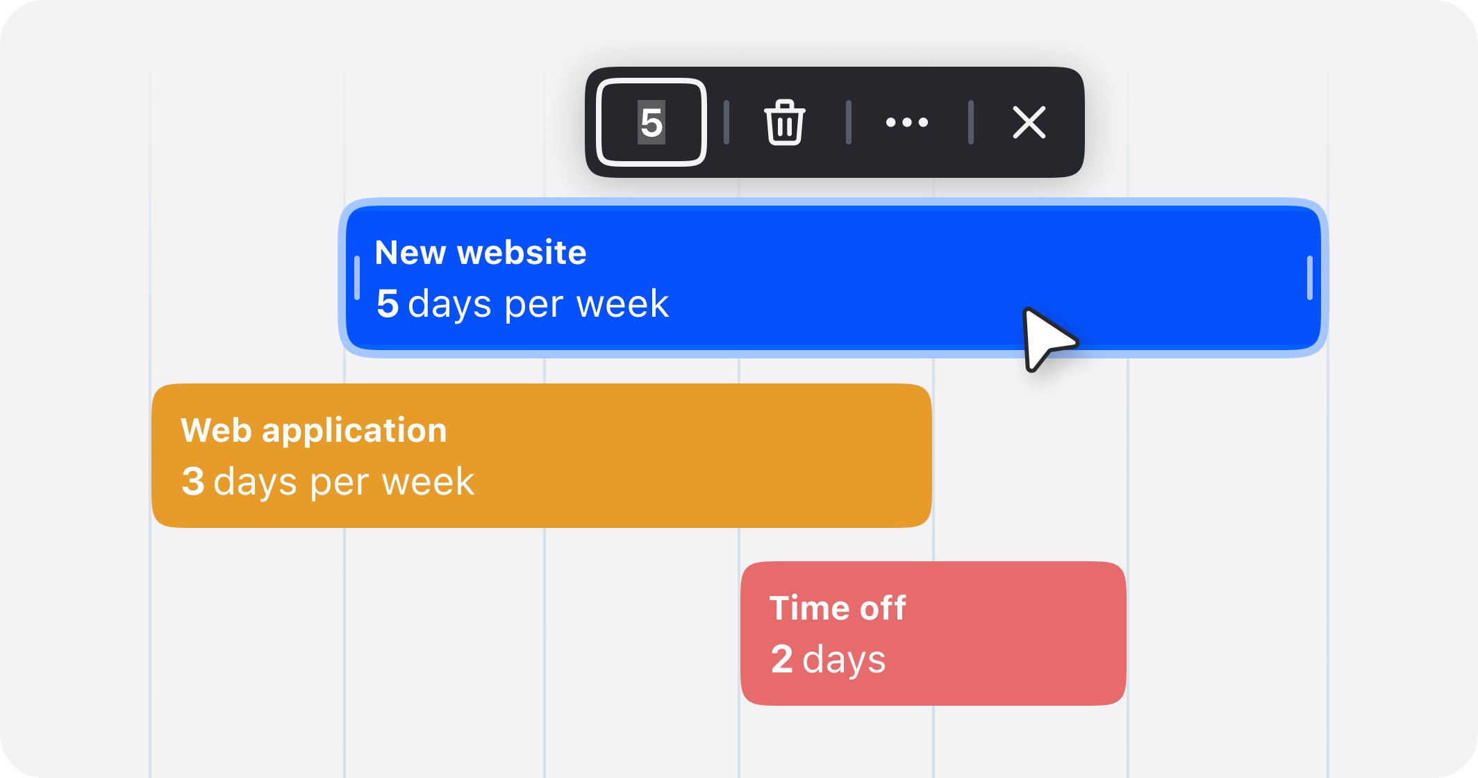 Notion, Trello, and Asana are great, but they weren’t made for this. We wanted a well-crafted tool—fast, intuitive, and a pleasure to use for resource planning too.
