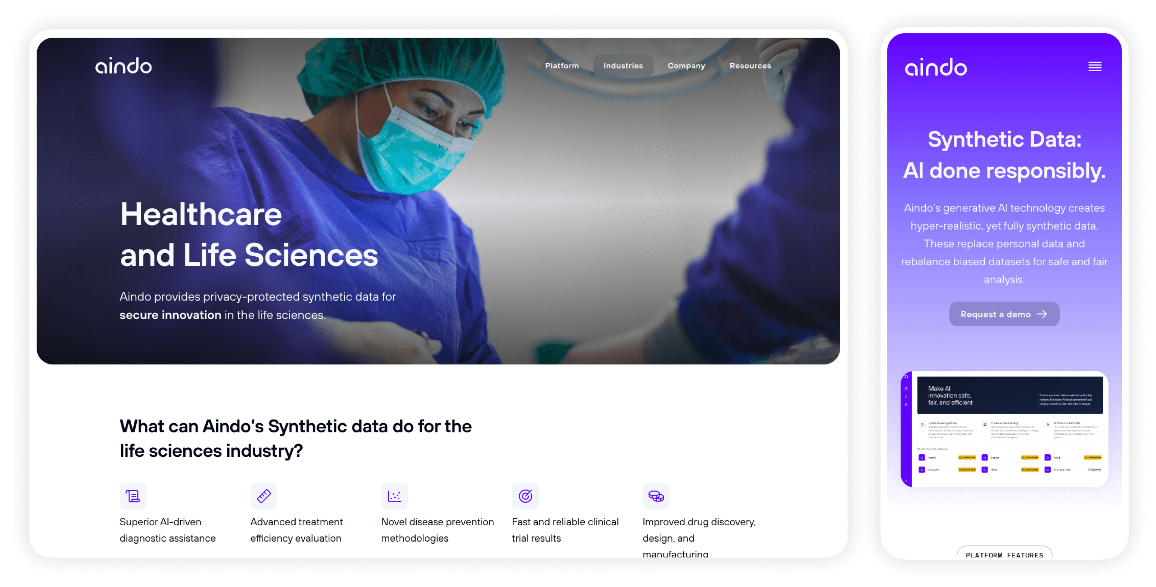 We designed a website that immediately makes clear to companies the benefits offered by Aindo’s innovative technology, which is set to greatly expand data usability.