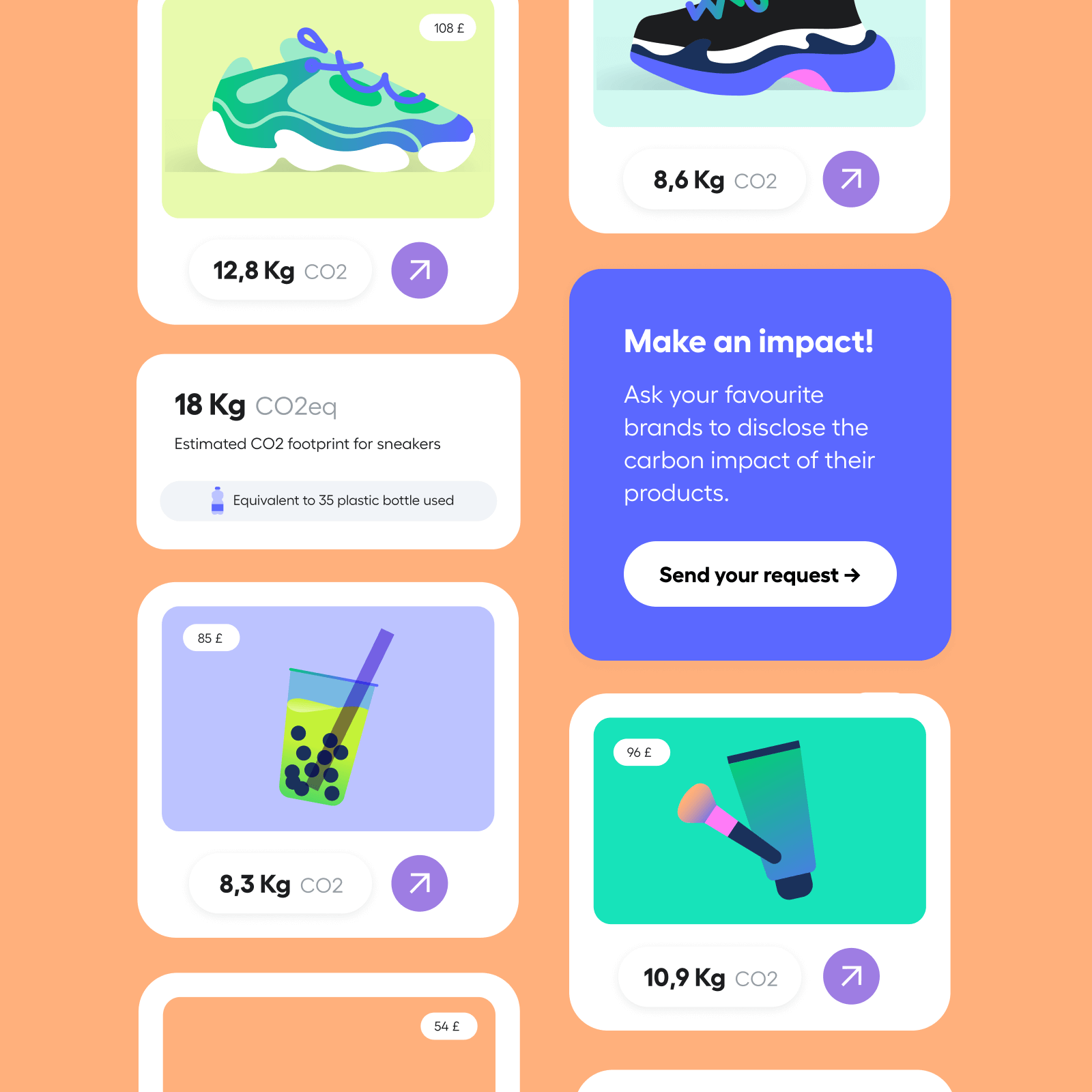 An important focus of Liv is to give people a tool to motivate brands to share the carbon footprint of their products. Within the Product Finder the user can specify a request for a product and brand not in the catalog, the app then generates a widget that can be shared on social media, tagging the brand directly.