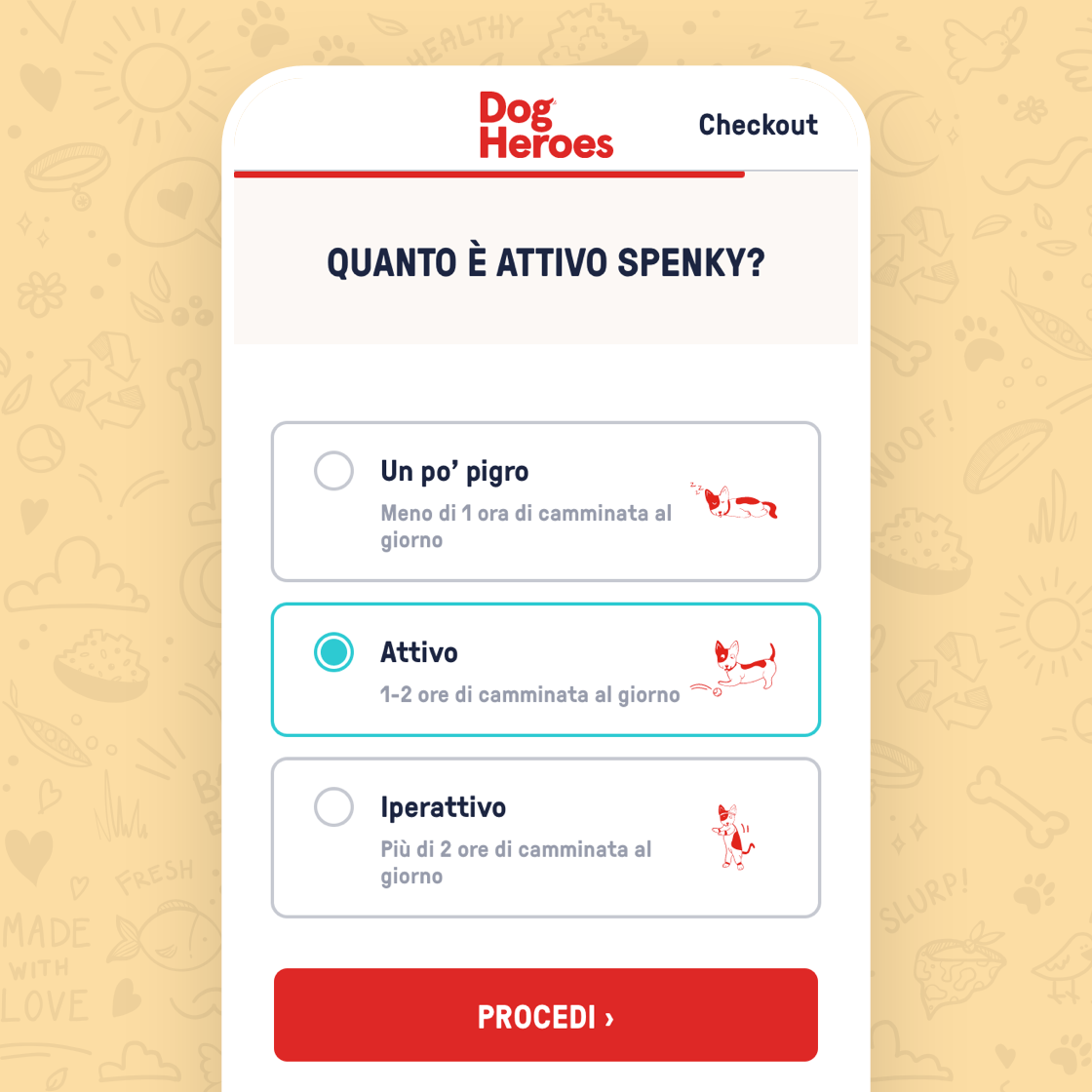 We defined the User Experience and designed the User Interface for the e-commerce solution by focusing on the purchase funnel, which consists of a series of interactive steps allowing the customer to obtain a customised product based on their dog’s calorie needs.