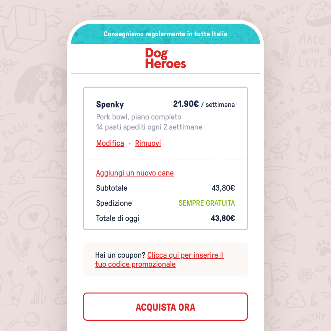 At the end of 2019, the Dog Heroes e-commerce site was launched on the market, initially only with delivery in Milan. At the beginning of 2020, partly owing to the closure of many stores due to COVID-19, Dog Heroes extended delivery throughout Italy to help people buy food for their pets online during lockdown.