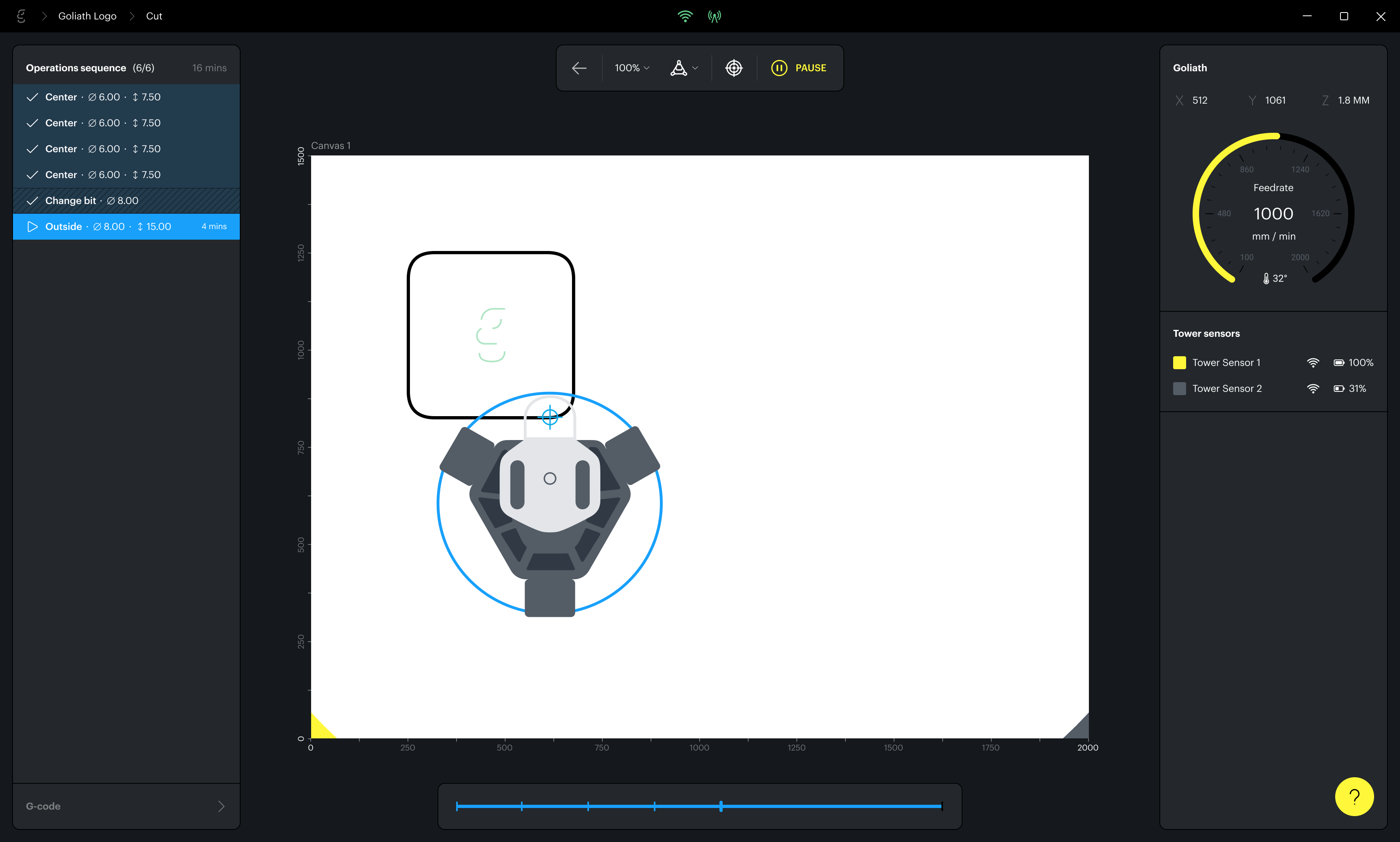 With Slingshot, Goliath users are able to prepare a design, define the cutting mode, connect to the robot via wi-fi and manage the processing in real time.