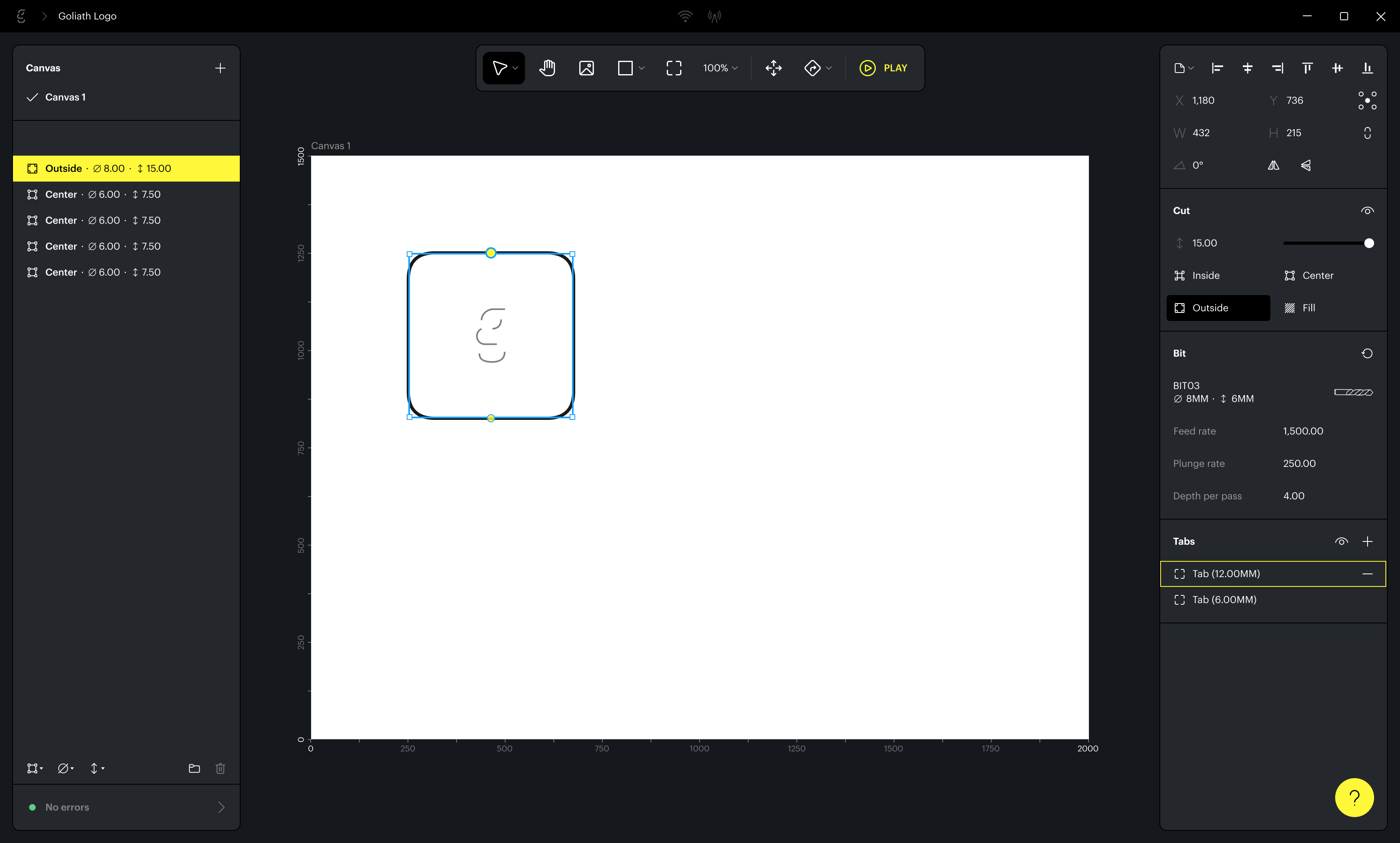 Disclaimer / Our studio designed the user interface for Goliath CNC software as external consultants. We are not affiliated with the company that operates this software. For any issues or support, please contact them directly at support@springa.tech, as we cannot assist with its functionality.