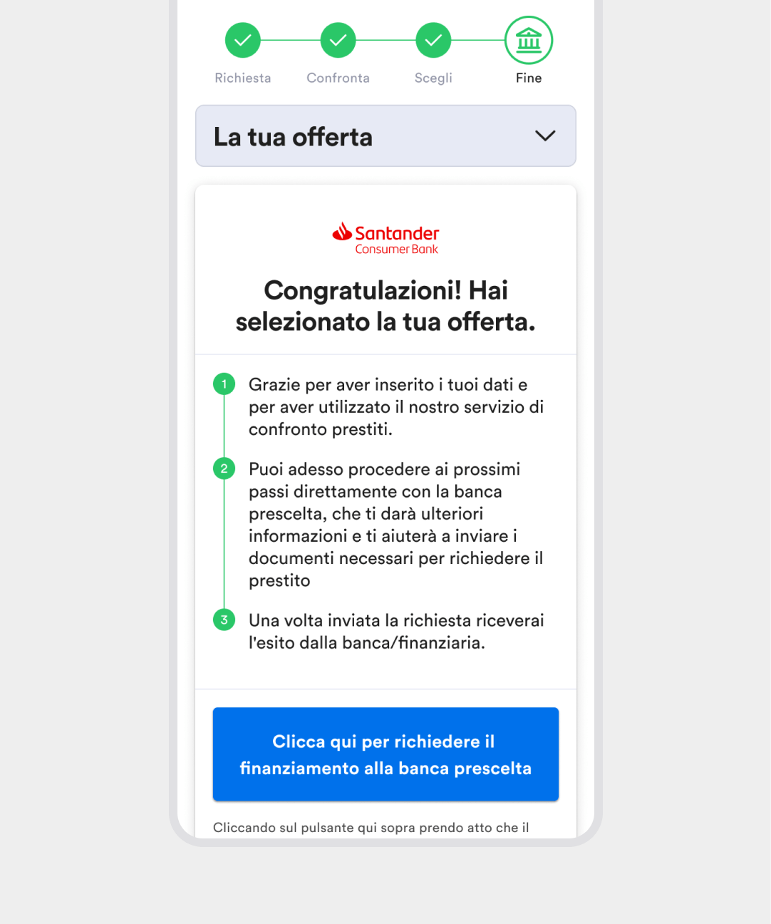 - An initial cycle of User Interview, in which we conducted generative interviews with selected users in the Italian territory aimed at reconstructing their Customer Journey in the loan search process, so as to bring out the most significant UX issues.