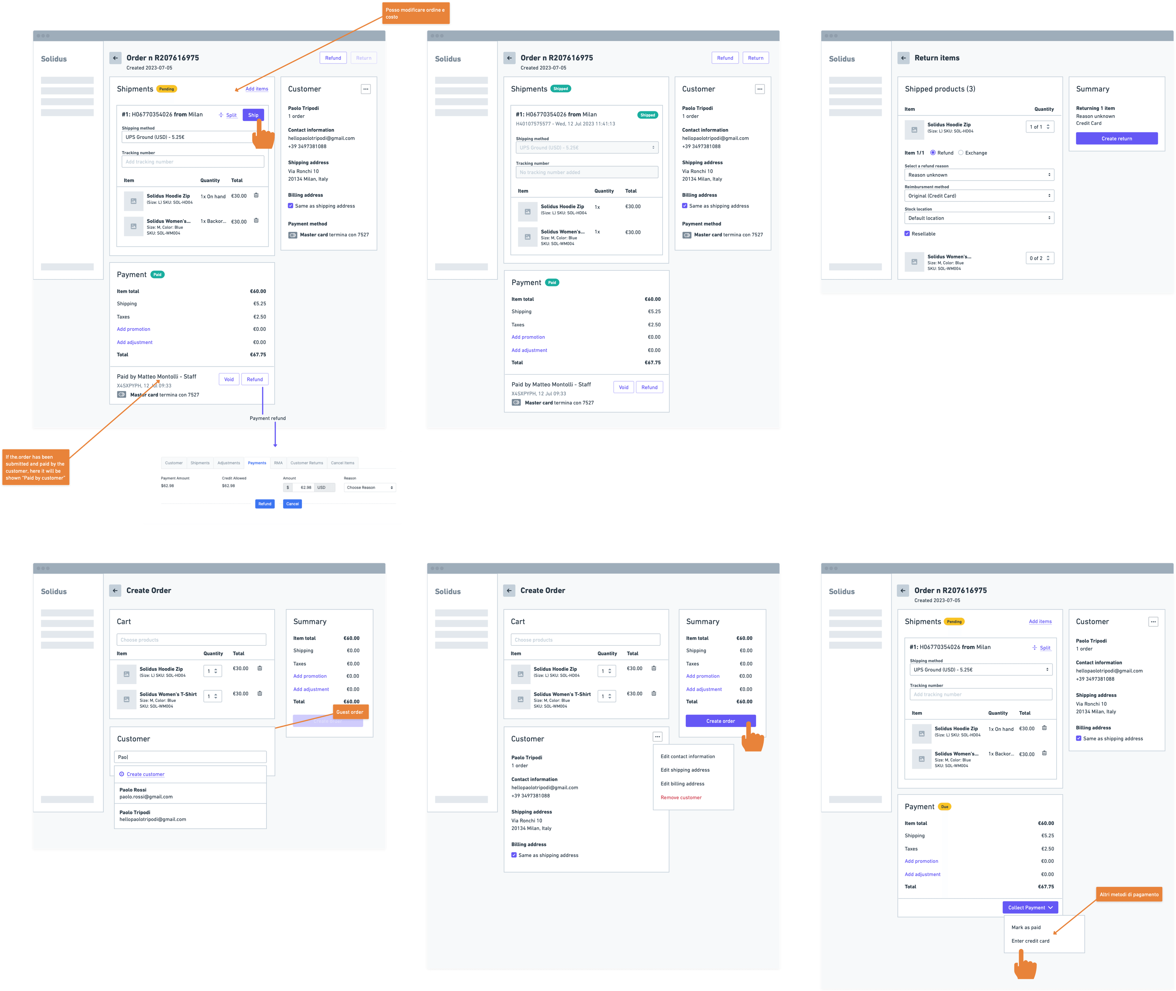We designed the core sections of the Solidus administration panel. This phase was critical to simplify the UX of the most important interactions such as order, shipping, and payment management.