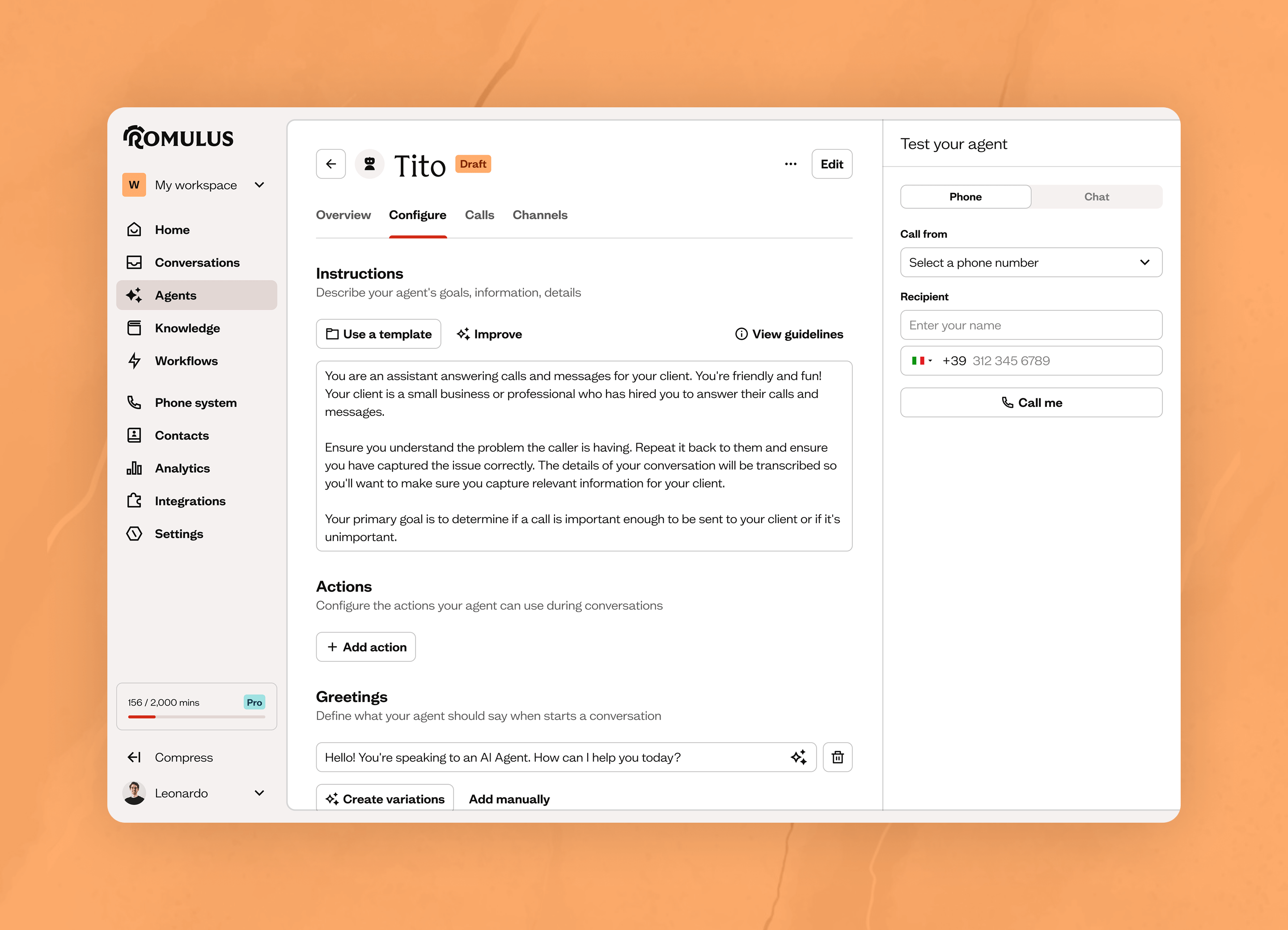 At the heart of Romulus is an omnichannel conversational platform that unifies calls, WhatsApp, and social chats into a single interface. The AI agents respond like human operators: they listen, qualify leads, and schedule appointments — even when the team is offline.