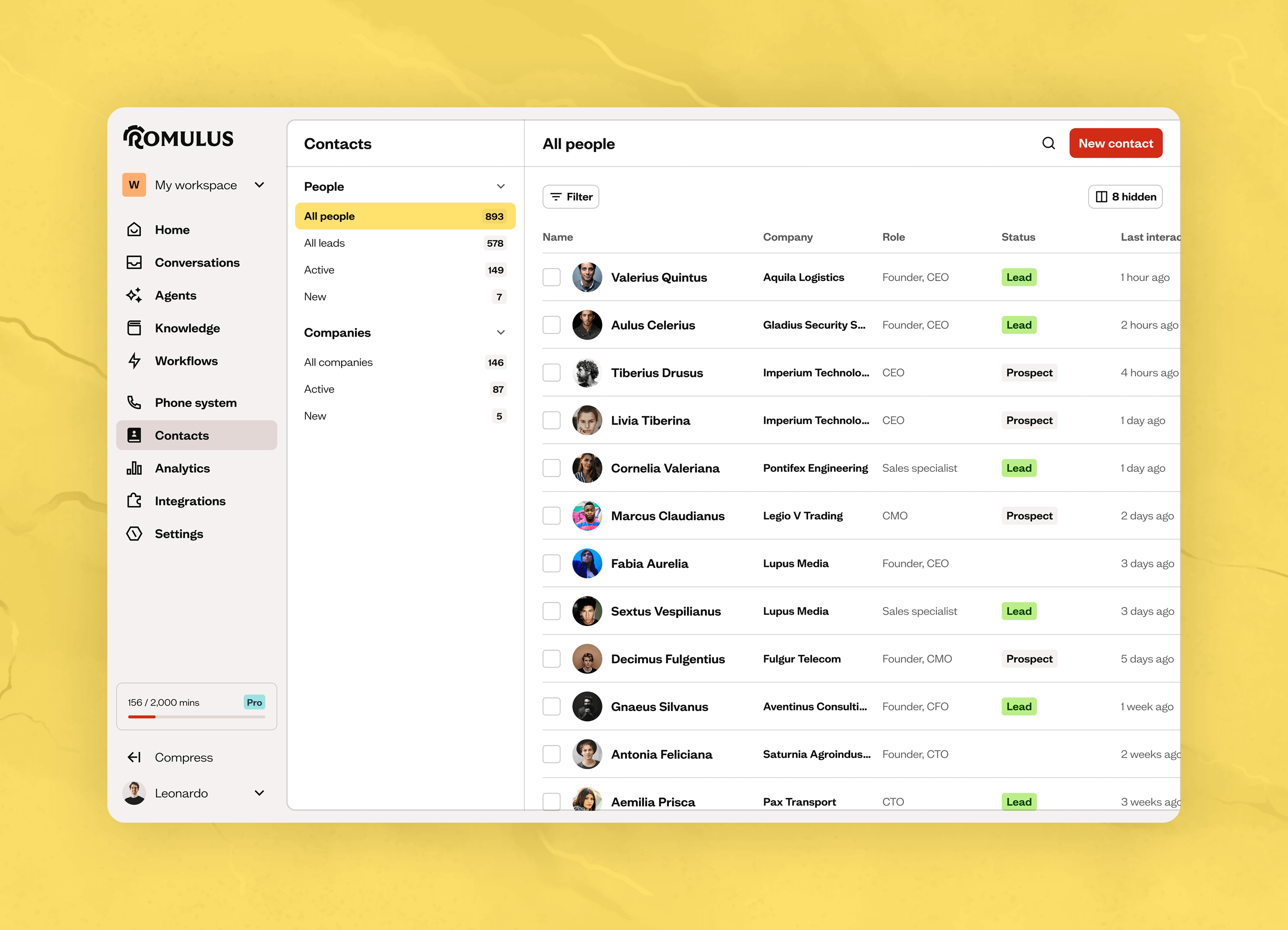 The name Romulus embodies the project’s ambition: like the first king of Rome, the product aims to expand a sales team’s power, multiplying its strength. Artificial intelligence becomes a legion of digital agents ready to simplify and enhance human work. The result is a brand with a strong, distinctive voice that conveys solidity and innovation as naturally as its agents speak on the phone.