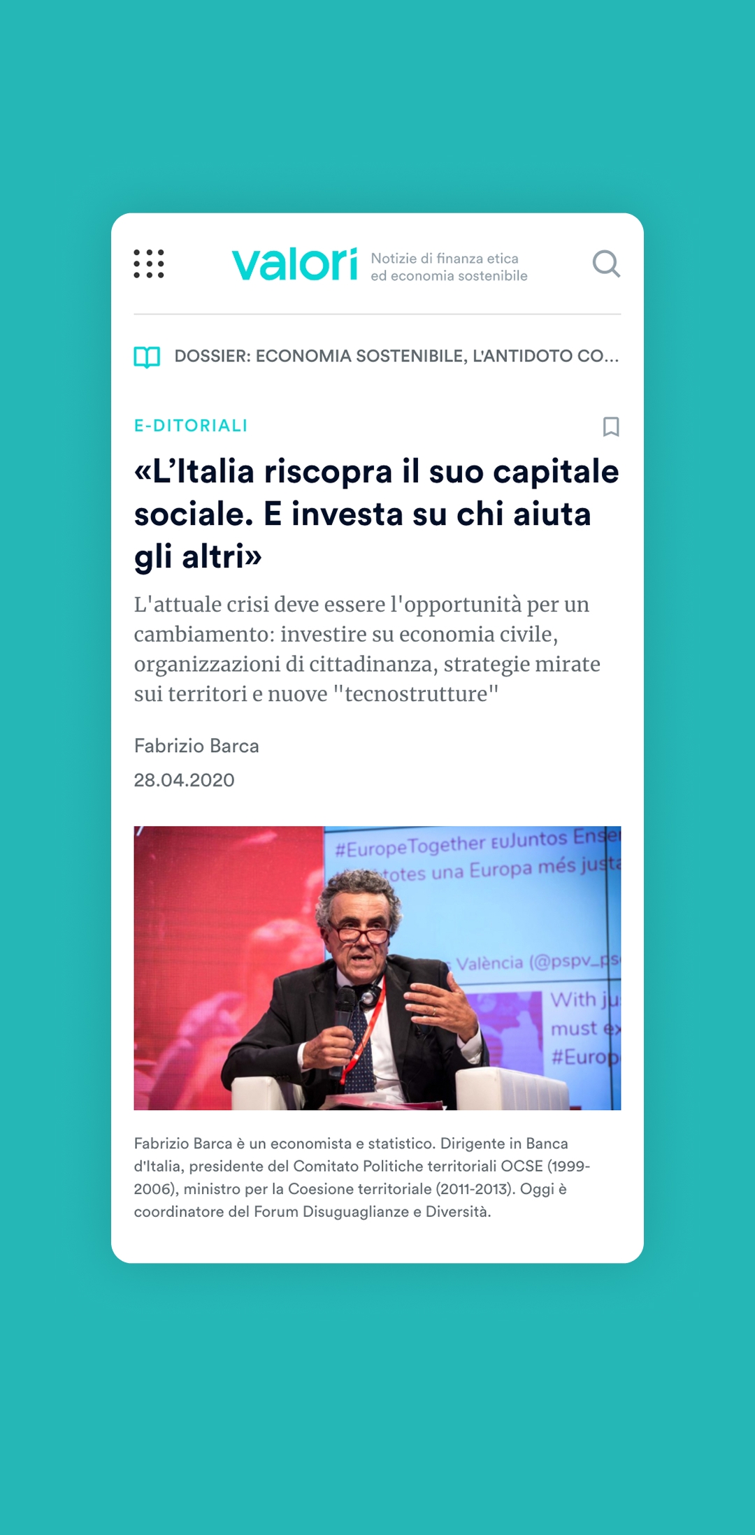 Valori is Fondazione Finanza Etica’s newspaper, promoted by Banca Etica and Etica Sgr. Through surveys and reports, Valori’s editorial team seeks to raise awareness of the relationship between economic and financial issues and those related to quality of life, the environment and the community.