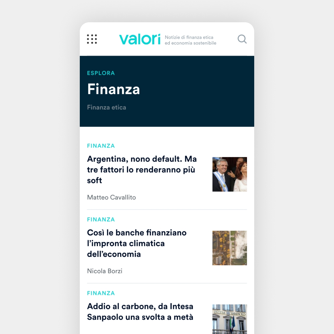 We redesigned the experience of reading the article, the heart of the online magazine, by prioritising a layout that in desktop view would use the entire space available more harmoniously, balancing the proportions and size of the typefaces and other visual elements. We made improvements to the site by working directly on the WordPress theme we had already created during the previous collaboration with Valori, to ensure continuity with the solution already used by the editorial and product development team.