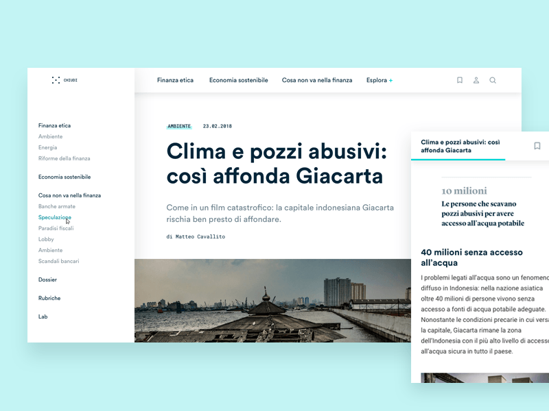 We have improved the layout of Valori’s dossiers to achieve pages with a strong visual impact, as traditionally happens for dossiers in print magazines. First of all, we wanted each dossier to have its own cover with title, image and logo.