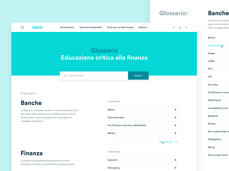 Starting from the feedback collected during the UX Interview Sprint, we have co-designed with the Valori team their new website, with a focus on a few specific areas.